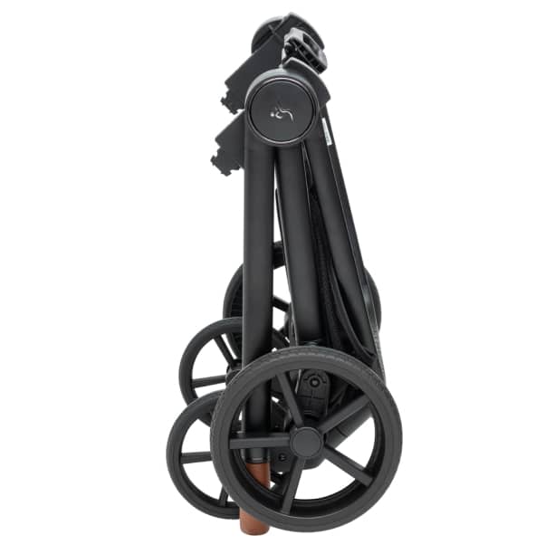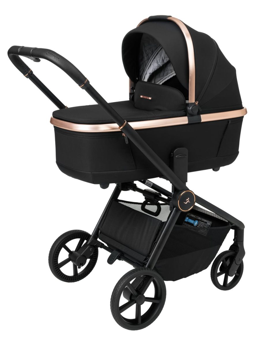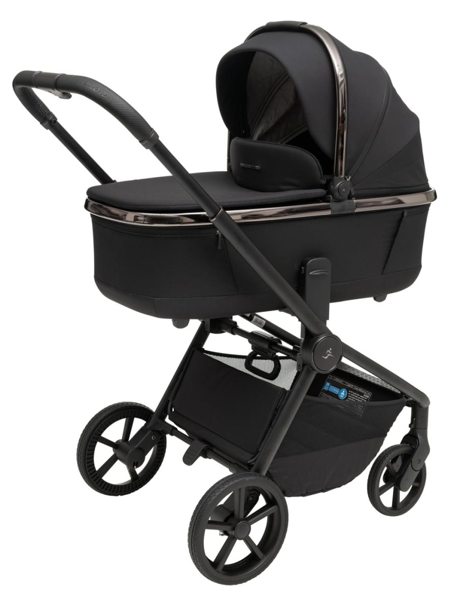 העגלה בעיצוב יוקרתי של כרום שחור לסל השכיבה וגגון הטיולון המעניק לה לוק אלגנטי במיוחד.