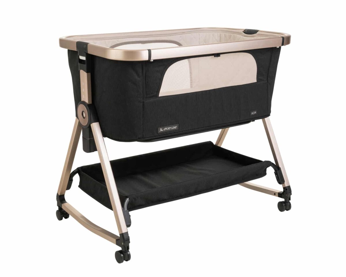 לעריסה גלגלים עם נעילה, מזרן עבה במיוחד, כילה מפוארת ומשטח אחסנה גדול במיוחד.
