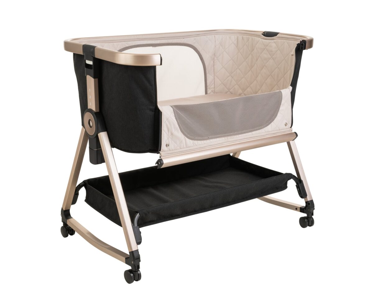 עריסה מעוצבת במגוון עיצובים חדשים נצמדת למיטת הורים.